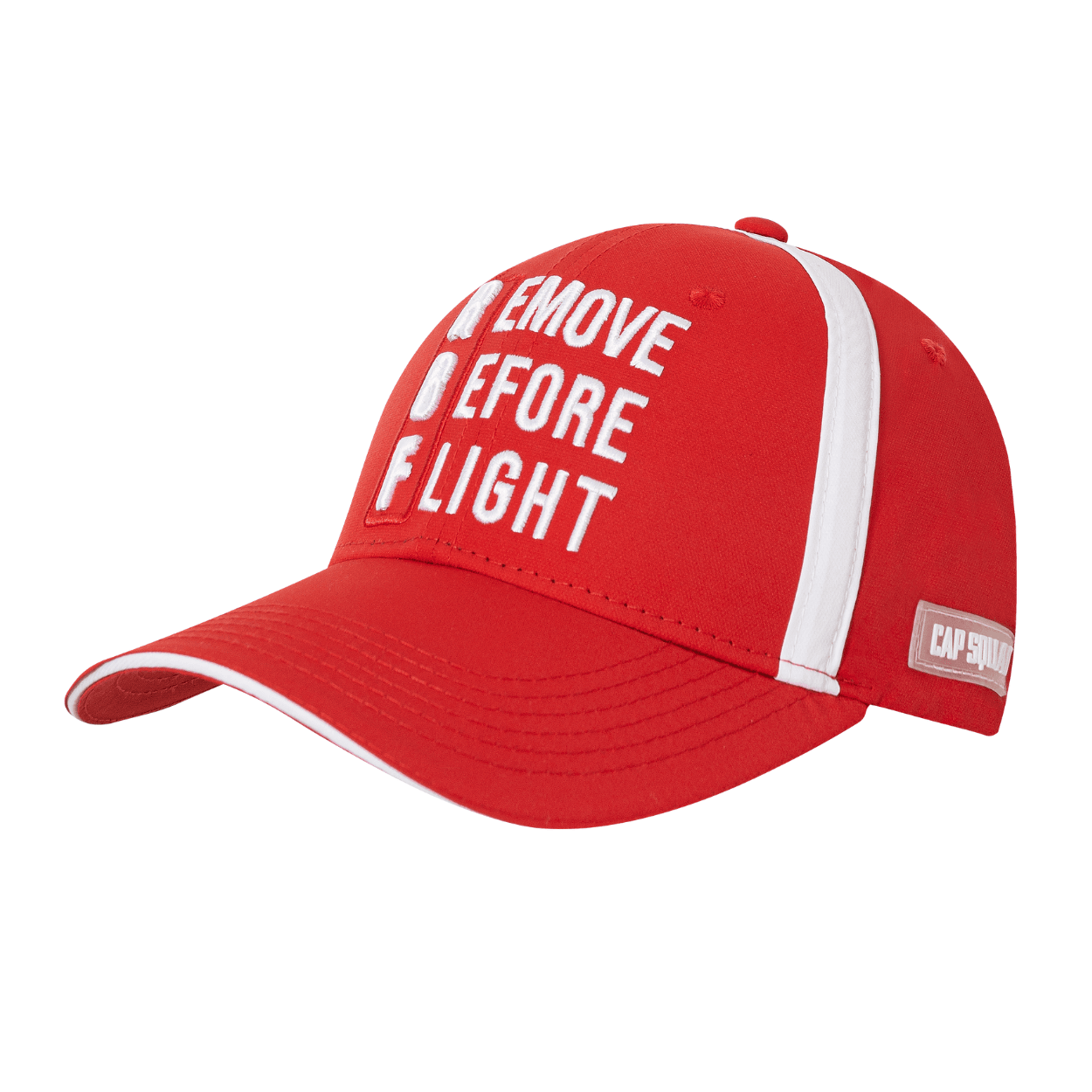 Czapka Remove Before Flight w intensywnej czerwieni to mocny akcent inspirowany lotnictwem. Duży haft na froncie przyciąga wzrok, a kontrastowe białe detale nadają jej sportowego charakteru. Regulowane zapięcie gwarantuje wygodę noszenia. Idealna propozycja dla fanów awiacji i oryginalnego stylu.